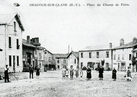 かつてのオラドゥール。路面電車も走っている。 村の広場。平和なひととき。