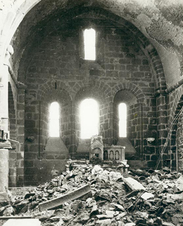 教会の祭壇はボロボロ。 事件直後の教会内部