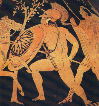 次の絵も、やはり古代ギリシアの壺に描かれている兵士ですが、