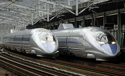 新宿に立ち並ぶ高層ビルの夜景、時速250キロで突っ走る新幹線。