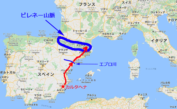 スペインから南フランスを抜け、アルプスを越える北回りのルートで