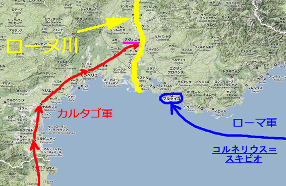 マッサリアに着いていたコルネリウス=スキピオ率いるローマ軍が、