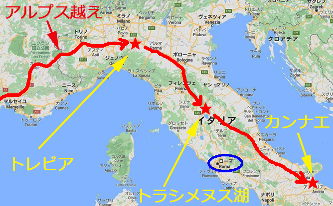 イタリアに入ってからローマと行った2つの戦いを取り上げます。
