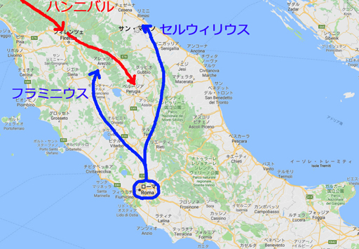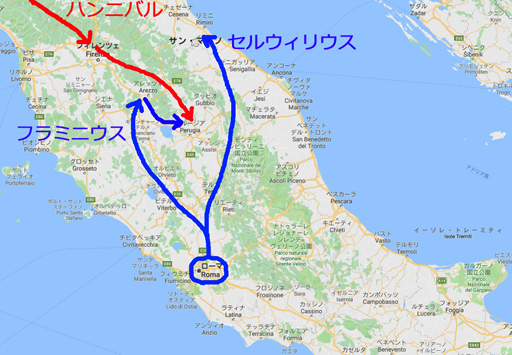 ローマを出たフラミニウスとセルウィリスが、二手に分かれて進みました。