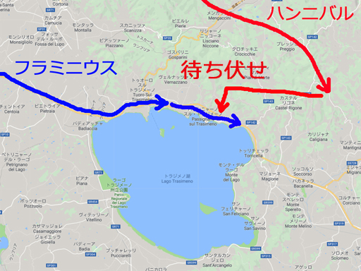 ハンニバルは先にこの湖に到着し、待ち伏せのための布陣をします。