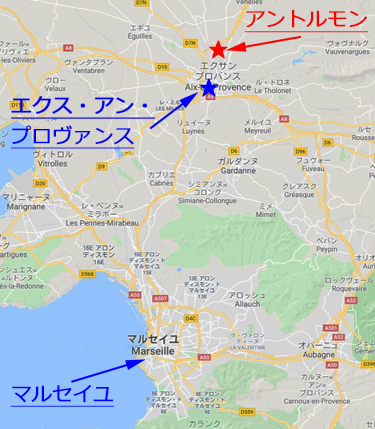 上の地図のマルセイユの部分を拡大すると下の地図のようになります。