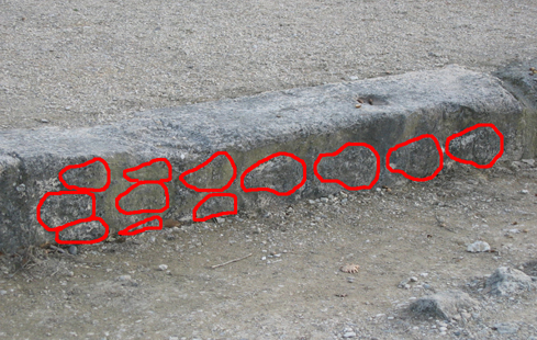 そして右側の写真を見ると、そのスペースの手前には長い石が横にして埋められています。