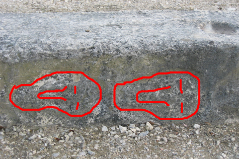 この横倒しになった長い石に、さらに近づいてよく見ると、