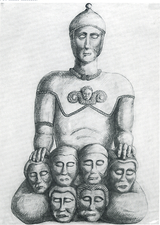 なので、本物の生首の代わりに、石の柱や彫像に、
