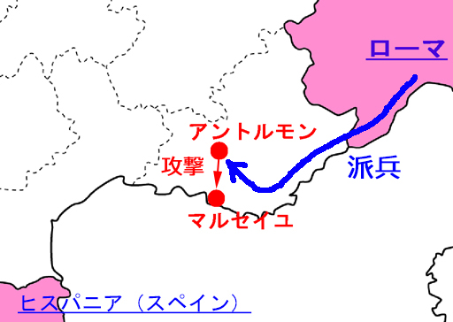 攻められて困ったマッサリアは、カルタゴを破って強力な軍事力を発揮しつつあった