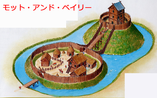 「モット・アンド・ベイリー」(Motte and Bailey)方式がフランスなどに導入されました。