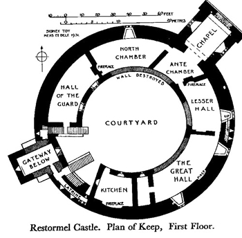 下の写真、イギリスの「レストーメル城」(Restormel Castle)は