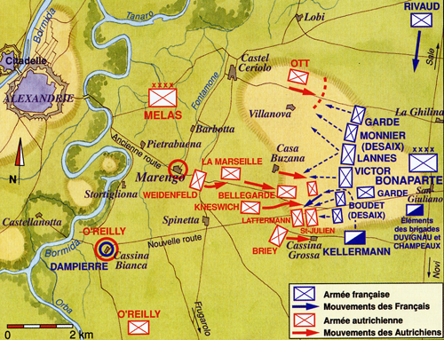 アレッサンドリアの街へと敗走しました。フランス軍はマレンゴを奪還しました。