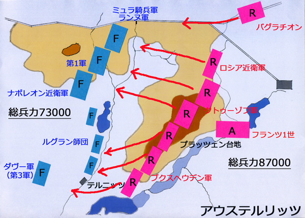 大地と渓谷からなるアウステルリッツに引き込んで殲滅させようと考えました。