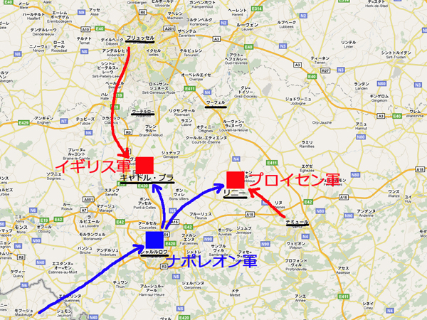 そこでナポレオンは、イギリス・オランダ軍とプロイセン軍が合流する前に、