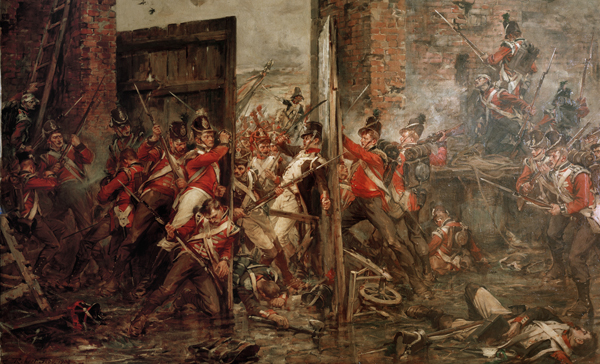 ウーグモン農場を奪おうとするフランス軍と、これを守るイギリス軍